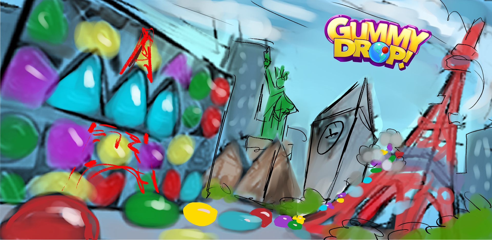Key art created for a brand refresh for the mobile game Gummy Drop. This was part of a large scale branding project created with my co-manager.